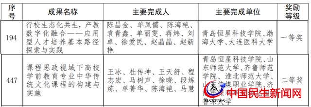 近日,山東省教育廳公布了第九屆教學成果獎(高等教育類)獲獎名單,青島恒星科技學院兩項成果獲得省級高等教育教學成果獎。其中,由董事長陳昌金教授主持的《行校生態(tài)化共生,產(chǎn)教數(shù)字化融合——應用型人才培養(yǎng)基本路徑探索與實踐》獲得山東省教學成果獎一等獎;王冰教授主持的《課程思政視域下高校學前教育專業(yè)中華傳統(tǒng)文化課程的構(gòu)建與實施》獲得山東省教學成果獎二等獎,是學校教學成果獎質(zhì)量的一次重大提升。