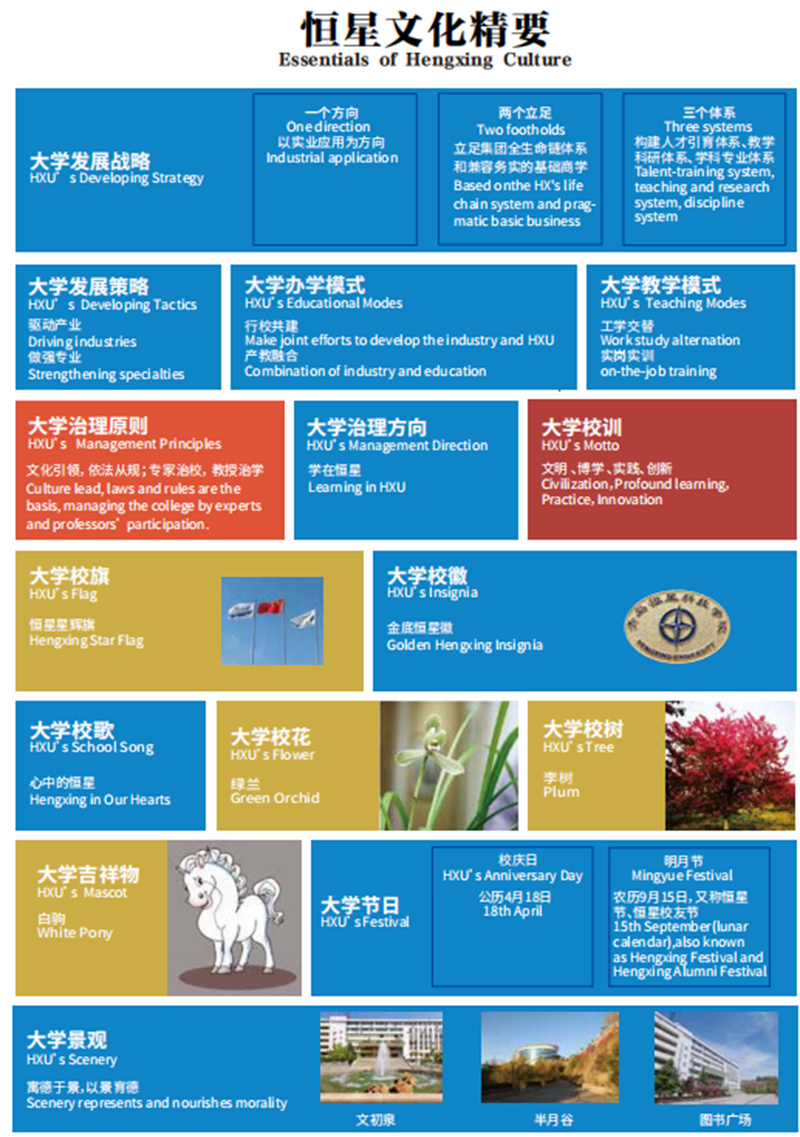培養(yǎng)君子品格,學會自我學習,精練專業(yè)技能,塑強綜合能力簡稱恒星二十四字教育方略,它基于恒星人才觀和五優(yōu)人才標準而形成,是恒星大學教育的主要方向和主要內(nèi)容。青島恒星科技學院的校訓(xùn)是:文明、博學、實踐、創(chuàng)新。