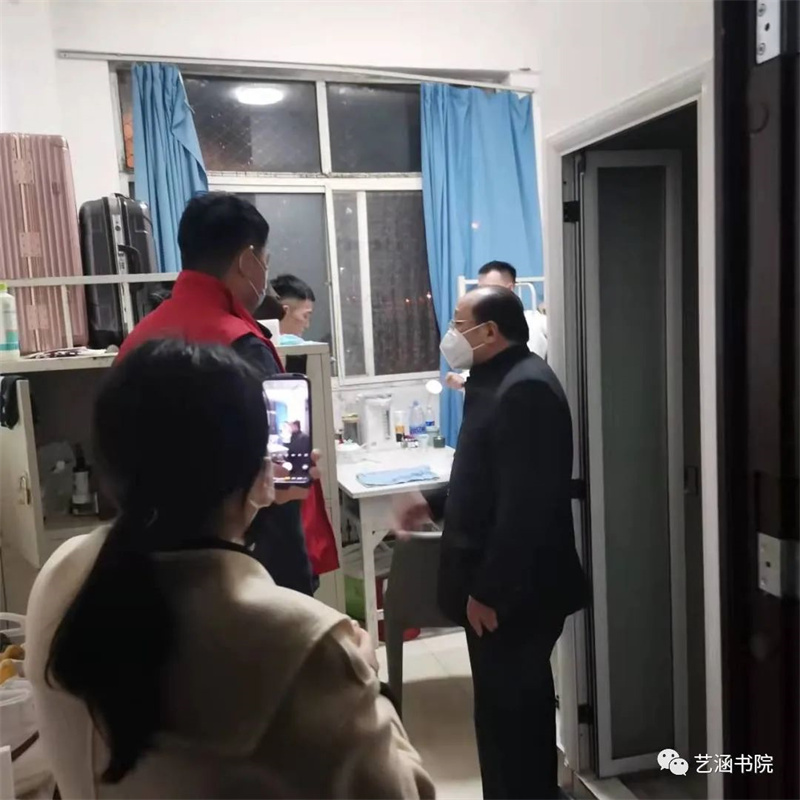 3月14日董事長(zhǎng)走進(jìn)藝涵書院,詢問學(xué)生基本學(xué)習(xí)、生活需求,及時(shí)有效了解學(xué)生合理訴求,還就有關(guān)當(dāng)前學(xué)生線上上課等方面與學(xué)生展開親切交談,督促學(xué)生在當(dāng)前形勢(shì)下也要保持積極向上的精神狀態(tài),養(yǎng)成良好的學(xué)習(xí)態(tài)度,要始終堅(jiān)持把學(xué)習(xí)放在首要位置。藝涵書院建立輔導(dǎo)員值班制度,設(shè)置輔導(dǎo)員值班崗。溫馨校園,師生相伴,所有輔導(dǎo)員下沉?xí)?,隨時(shí)待命,為學(xué)生提供精準(zhǔn)、精細(xì)的服務(wù),細(xì)致的人文關(guān)懷。輔導(dǎo)員每天都會(huì)走進(jìn)學(xué)生宿舍,查看宿舍消毒通風(fēng)情況、衛(wèi)生狀況,指導(dǎo)學(xué)生做好個(gè)人防護(hù)。