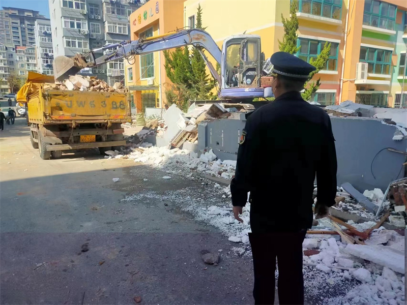 作為青島市城市更新和城市建設的主戰(zhàn)場、主陣地,今年以來,市北區(qū)綜合行政執(zhí)法局聯(lián)合22個街道綜合執(zhí)法中隊制定拆違方案,大力開展棚改騰空用地、私搭亂建公共場地、山頭公園圈占綠地等違建問題治理工作,目前已拆除違建9萬余平,為高效推進市北區(qū)城市更新建設保駕護航。