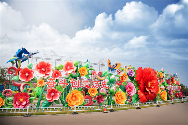 白天暢游花海,夜晚賞盡彩燈。金沙灘啤酒城還引入47組自貢彩燈,融合百年黨史、民俗非遺、城市特色和啤酒文化、海洋文化、哈舅IP等元素,打造百余個彩燈造型,點亮不夜啤酒城。
