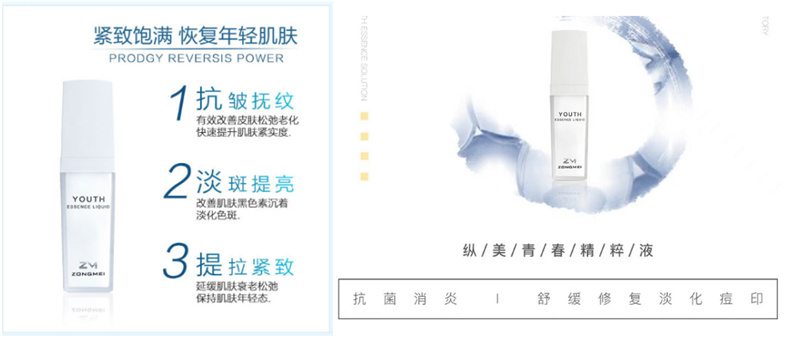 在官方公眾號的包裝下,縱美青春精粹液這款化妝品居然還具有了“抗菌消炎”的醫(yī)療作用。
