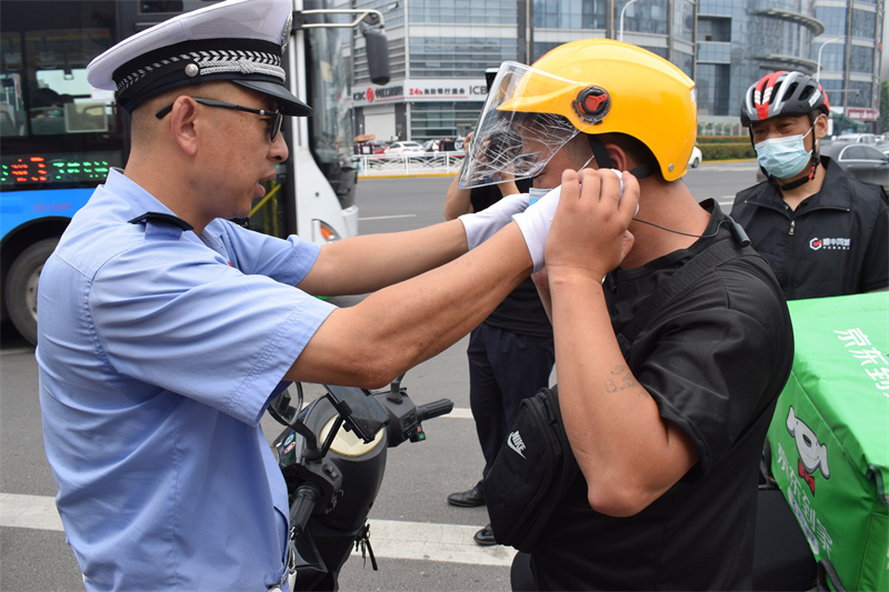 棧橋酒業(yè)贊助了100頂頭盔以及給奮戰(zhàn)在一線的交警捐贈了上百箱棧橋牌白花蛇舌草水,只要交警在路上巡邏時(shí)發(fā)現(xiàn)外賣小哥或者騎電動車沒帶頭盔的騎行者,他們就會及時(shí)讓他們停下來,送上一頂安全頭盔。