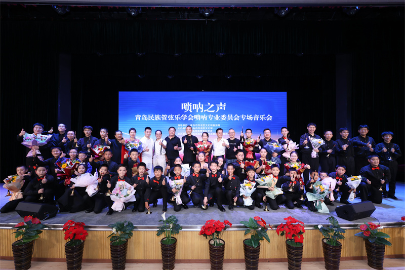 青島民族管弦樂學會、青島歌舞劇院民族樂團各位領(lǐng)導同社會各界的專家,教授,老師和觀眾們一起觀看了這場精彩的嗩吶盛會。