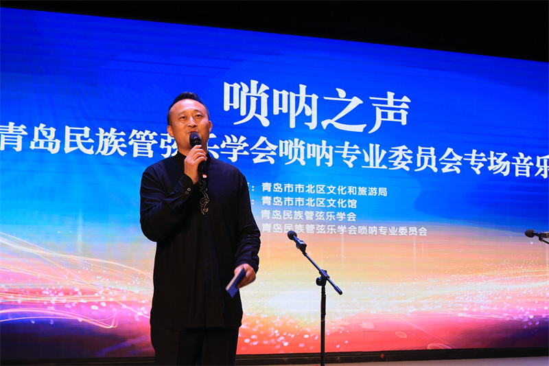 音樂會由青島民族管弦樂學會副會長,嗩吶專業(yè)委員會會長,青島歌舞劇院民族樂團管樂聲部長、嗩吶首席、國家二級演奏員、青年嗩吶演奏家周建忠老師親自擔任導聆, 作為本場音樂會的策劃者、組織者的周會長介紹:當初策劃這場‘嗩吶之聲’專場音樂會的初衷是為了弘揚嗩吶藝術(shù),傳承中國民族文化,讓更多的人了解嗩吶這門樂器和近距離感受中國嗩吶的獨特魅力,進一步推動和提升青島嗩吶專業(yè)的整體水平,為學習嗩吶的孩子們、學生們搭建一個展示自我風采的高品質(zhì)平臺。