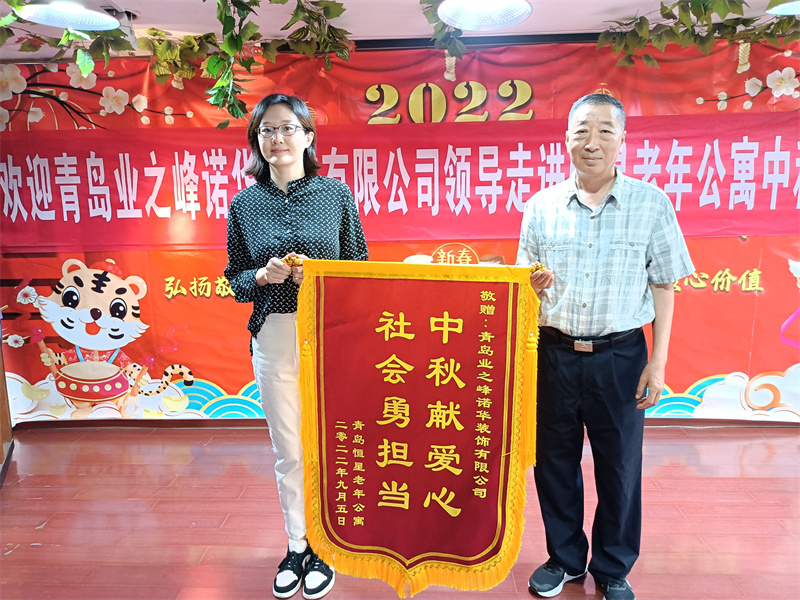 > 社會勇?lián)?dāng) 青島業(yè)之峰諾華裝飾有限公司向恒星老年公寓老人贈送愛心月餅