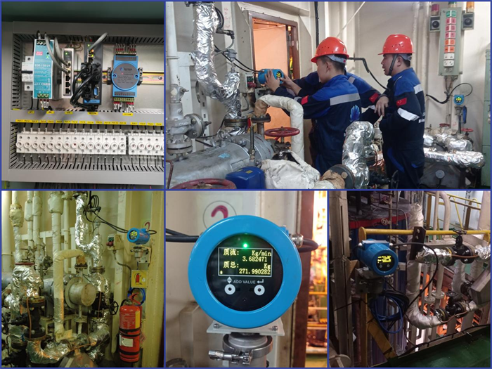本次D-Performance船舶能效監(jiān)測系統(tǒng)加裝,儒海在接到船東緊急需求后,各部門迅速響應(yīng),緊密配合。綠色技術(shù)研究院第一時間登輪勘測,設(shè)計改裝方案;集采中心針對傳感器等硬件與耗材快速采購供船;工程技術(shù)軍團和工業(yè)互聯(lián)網(wǎng)產(chǎn)品研發(fā)團隊加班搶工,僅用8天就完成了D-Performance系統(tǒng)加裝、調(diào)試、操作培訓(xùn)工作,其中加裝了6臺燃油質(zhì)量流量計、主機軸功計和相關(guān)配套設(shè)施,實現(xiàn)了主輔機及鍋爐燃油消耗、主機軸功率、AMS、GPS等運行和能效數(shù)據(jù)的自動采集。
