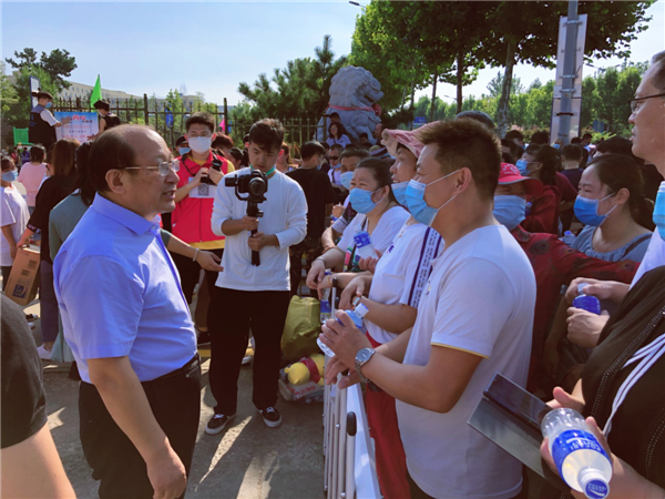 (青島恒星科技學(xué)院董事長(zhǎng)、校長(zhǎng)陳昌金博士親臨迎新現(xiàn)場(chǎng)與學(xué)生家長(zhǎng)親切交流)