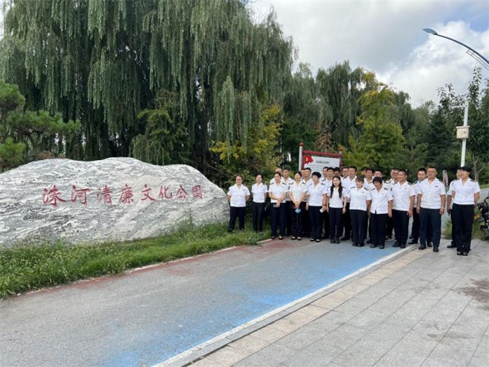 在洙河清廉文化公園,大家沿著清風(fēng)步行道緩步前行,在忠誠(chéng)干凈擔(dān)當(dāng)?shù)袼堋?ldquo;兩袖清風(fēng)”“廉石壓艙”雕塑、清風(fēng)亭、清風(fēng)長(zhǎng)廊、張夢(mèng)鯉、左懋第等清官廉吏雕塑前駐足參觀,通過(guò)觀看旁白的歷史廉潔故事、感悟地方特色廉政案例,全體成員在潛移默化中筑牢了拒腐防變的思想防線(xiàn),進(jìn)一步堅(jiān)定了“知敬畏、存戒懼、守底線(xiàn)” 的政治自覺(jué)。?