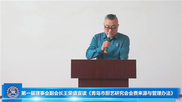 青島市廚藝研究會第一屆理事會副會長王榮盛同志,宣讀《青島市廚藝研究會會費來源與管理辦法》,與會代表進(jìn)行了表決通過。