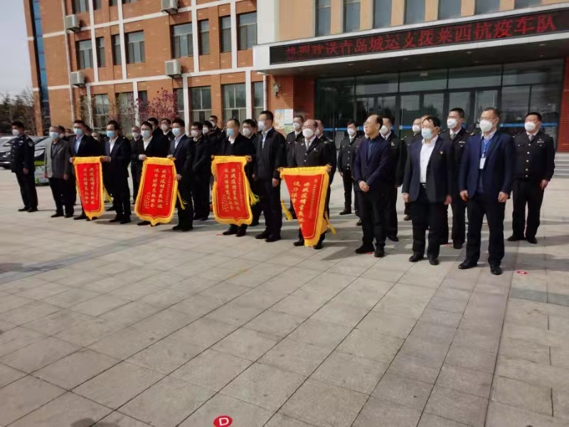 萊西市舉行儀式歡送青島城運(yùn)支援萊西抗疫車隊