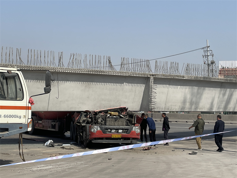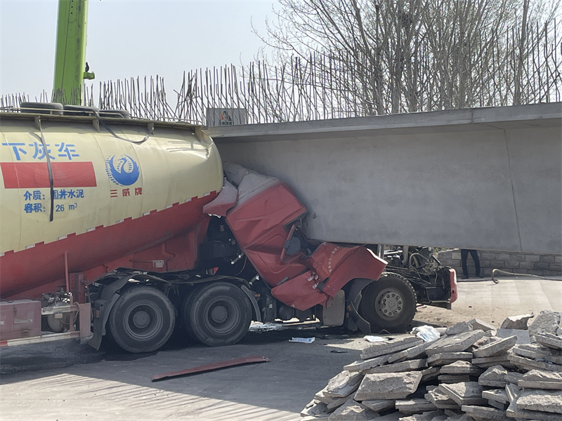 膠州:事故頻發(fā)路段罐車撞上路橋