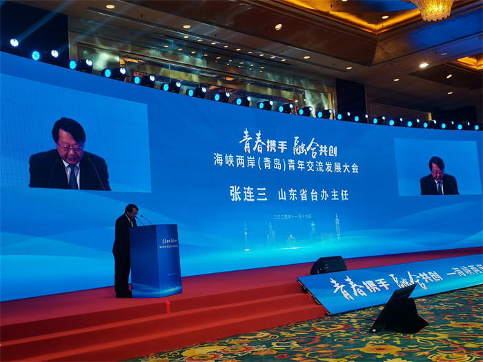 山東省臺辦主任張連三在致辭中表示,習(xí)近平總書記高度重視、關(guān)心兩岸青年成長、成才,強(qiáng)調(diào)“要持續(xù)為兩岸青年成長、成才、成功創(chuàng)造更好條件、更多機(jī)遇”,本次大會是貫徹落實習(xí)總書記重要指示的具體舉措。山東歷來重視支持臺灣青年來魯發(fā)展,在全省開展臺灣青年來魯實習(xí)就業(yè)促進(jìn)行動,推進(jìn)臺灣青年享受支持政策同等待遇,將繼續(xù)為臺灣青年來山東學(xué)習(xí)就業(yè)生活提供更多機(jī)會和便利。當(dāng)前,山東正加快建設(shè)綠色低碳高質(zhì)量發(fā)展先行區(qū),打造高水平對外開放新高地,經(jīng)濟(jì)社會發(fā)展活力迸發(fā)。青島是山東龍頭城市,充滿發(fā)展機(jī)遇,熱誠歡迎廣大臺灣青年來青島、來山東追夢、筑夢、圓夢,共創(chuàng)祖國統(tǒng)一、民族復(fù)興的歷史偉業(yè)。