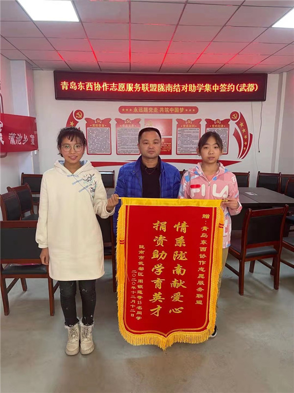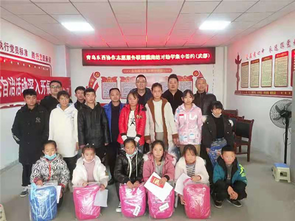 青島(東部)志愿服務聯(lián)盟是由青島、濟南、威海、北京、江蘇、上海等地的愛心人士和威海商會、徐州商會、泰萊農(nóng)業(yè)、富德人壽等商會、高校和企業(yè),自發(fā)、自愿組成的助學志愿者互助組織,有的資助者是多人(三人)幫一人,有的是一人幫多人。(匿名資助者馬先生一人幫十人)。劉云霞、李莉婷、于子晴分別動員家人結(jié)親資助了3-5個隴南孩子。