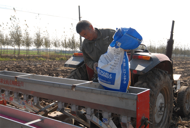 10月18日,在即墨區(qū)段泊嵐鎮(zhèn)東瓦三村的土地里,機器聲隆隆作響,一粒粒麥種隨著播種機的上下翻動被播進(jìn)土里,農(nóng)民于成愛坐在地頭一邊準(zhǔn)備著種子肥料,一邊查看播種情況。