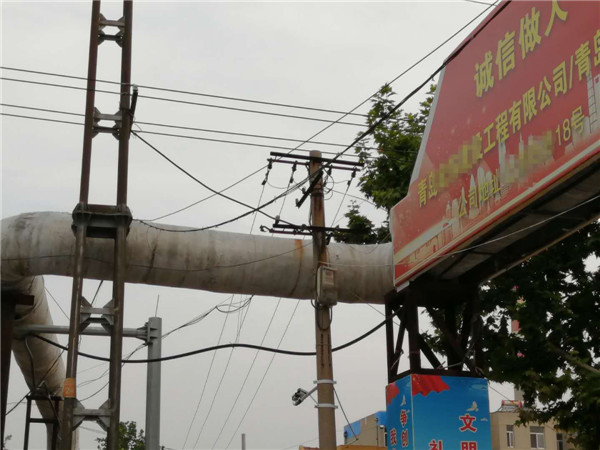 “當(dāng)時在現(xiàn)場看到這種情況,我趕緊撥打了120,市立醫(yī)院急診就在邊上,但是等醫(yī)生過來時小伙子已經(jīng)沒有心跳了,醫(yī)生診斷后宣布死亡,太可惜了。”王先生告訴記者,當(dāng)天下午他經(jīng)過這里,看到在路邊賣涼皮的大姐焦急的樣子,才知道在頭頂上面的供熱管道上有個小伙子觸電了,大姐急的不知道怎么辦才好,隨后他撥打了電話。記者看到出事的地方是一條直徑約1米的供熱管道,最頂端距離地面約有5米,根據(jù)市民提供的視頻來看,小伙子當(dāng)時就僵硬的躺在供熱管道上,管道邊上就是一根老舊的電線桿,管道的上端離電線桿頂部目測也就1米多點,電線桿頂部是一條向南延伸的380伏的低壓線路,這條線路是裸露的鋁線。其它地方也是亂七八糟不知道什么線互相纏繞在一起,線桿和管道平行的位置還掛著一個電表。