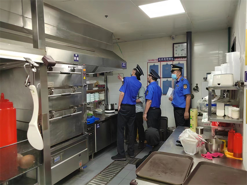 中國民生新聞網(wǎng)訊 (通訊員 孫序鵬)近日,金家?guī)X街道執(zhí)法中隊對苗嶺路周邊的數(shù)十家餐飲門店進行執(zhí)法檢查。重點對油煙排放是否超標(biāo)、油煙凈化裝置是否符合安裝要求、油煙凈化設(shè)施是否正常運行和使用以及定期維護清洗等方面進行了全方位檢查。