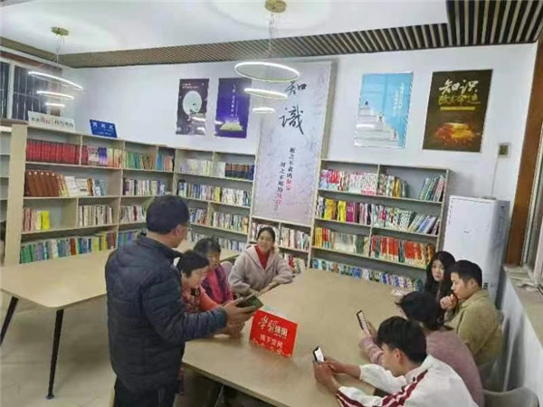 在農家書屋,利用實體閱讀平臺,“用活”活動場所資源優(yōu)勢,將“學習強國”從“云端”搬到黨員群眾的身邊,將優(yōu)質數(shù)字書籍圖冊推送到黨員群眾面前,實現(xiàn)“線上+線下”場所平臺等資源的深度融合。