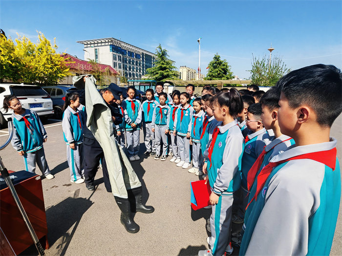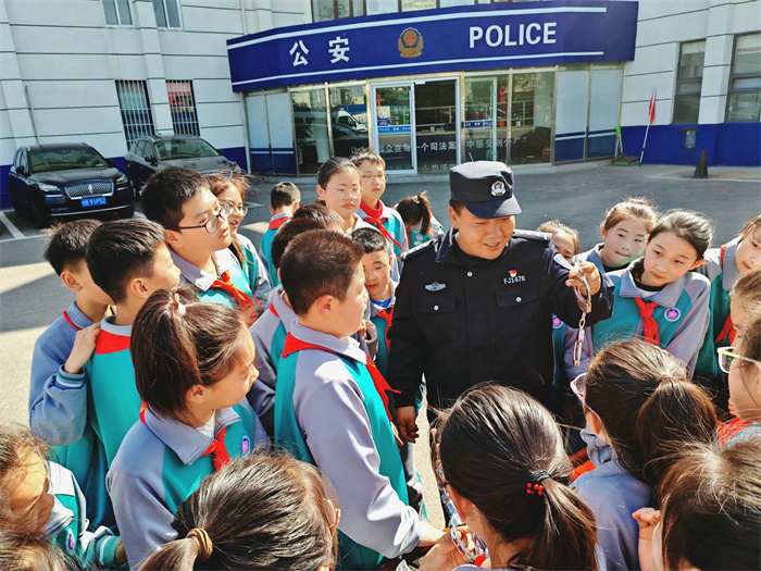 四月的陽光包裹著銀鈴般的笑聲灑在膠州市公安局膠北派出所的院子里,30個系著紅領(lǐng)巾的萌娃“探險家”在4月23日的下午走進(jìn)派出所,開啟沉浸式警營探索之旅,民警蜀黍們則化身“平安魔法師”,將硬核警營變成充滿驚喜的成長課堂。