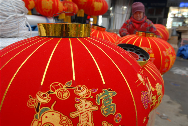 1月15日,顧客在山東青島市即墨區(qū)小商品城選購新年飾品。 隨著新春佳節(jié)的臨近,山東青島市即墨區(qū)小商品城的年貨市場日漸紅火,攤位上喜氣洋洋,店鋪擺滿了燈籠、福字、金牛等新年飾品,紅燈籠、中國結(jié)、電子鞭炮、對聯(lián)、掛件等新年飾品和琳瑯滿目的商品吸引著眾多的顧客。即墨區(qū)小商品城迎來喜慶用品節(jié)前銷售旺季。