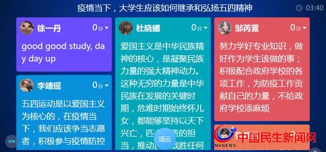 線上教學(xué)期間,思政教育也同樣融入了云端課堂,專業(yè)課程融入課程思政,潤物無聲,以愛育人,實現(xiàn)云端價值引領(lǐng)。