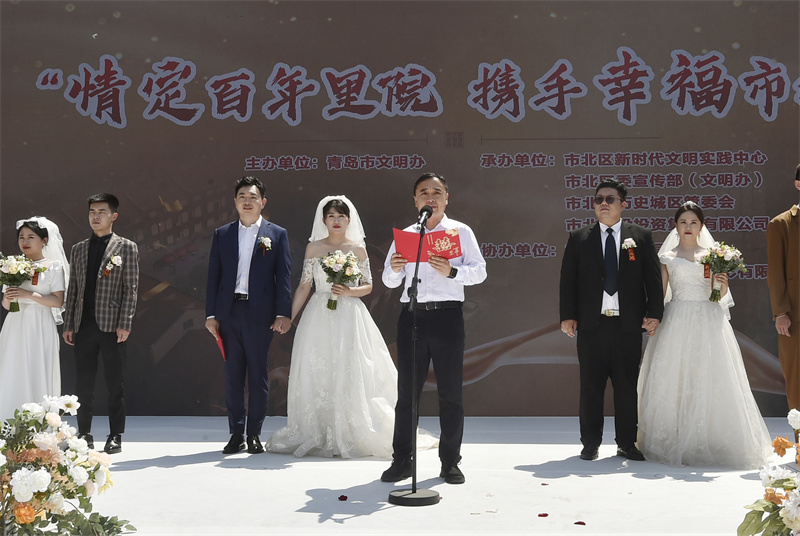 中國民生新聞網(wǎng)訊 市北區(qū)自新時(shí)代結(jié)婚禮堂啟用和新時(shí)代文明實(shí)踐集體婚禮舉辦以來,越來越多的新人摒棄舊俗,啟用新的結(jié)婚方式,更加文明,更加節(jié)儉,更有新時(shí)代青島范兒。5月22日,在青島最大的百年里院廣興里舉行了一場(chǎng)別開生面的集體婚禮,集體婚禮以“情定百年里院 攜手幸福市北”為主題,由青島市文明辦主辦,市北區(qū)新時(shí)代文明實(shí)踐中心、市北區(qū)委宣傳部(文明辦)、市北區(qū)歷史城區(qū)管委會(huì)、市北建設(shè)投資集團(tuán)有限公司承辦,市北區(qū)民政局、青島薇薇新娘婚紗攝影有限公司協(xié)辦,8對(duì)新人齊聚一堂,在親人朋友、市民群眾的祝福和見證下,以溫馨浪漫而又簡(jiǎn)約簡(jiǎn)單的方式步入新時(shí)代文明實(shí)踐婚姻的殿堂。