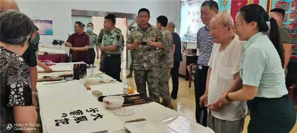 今年是中國人民解放軍建軍96周年,是延安雙擁運(yùn)動(dòng)80周年和抗美援朝勝利70周年,也是青島市爭創(chuàng)全國雙擁模范城“十連冠”的迎檢之年。在這樣一個(gè)具有重大紀(jì)念意義的節(jié)點(diǎn),7月26日,市北區(qū)文學(xué)藝術(shù)界聯(lián)合會(huì),市北區(qū)作家協(xié)會(huì)組織作家、畫家、書法家走進(jìn)軍營——山東省軍區(qū)青島第十三離職干部休養(yǎng)所,開展“作家進(jìn)軍營•書畫慶八一” 文化擁軍志愿服務(wù)活動(dòng)。