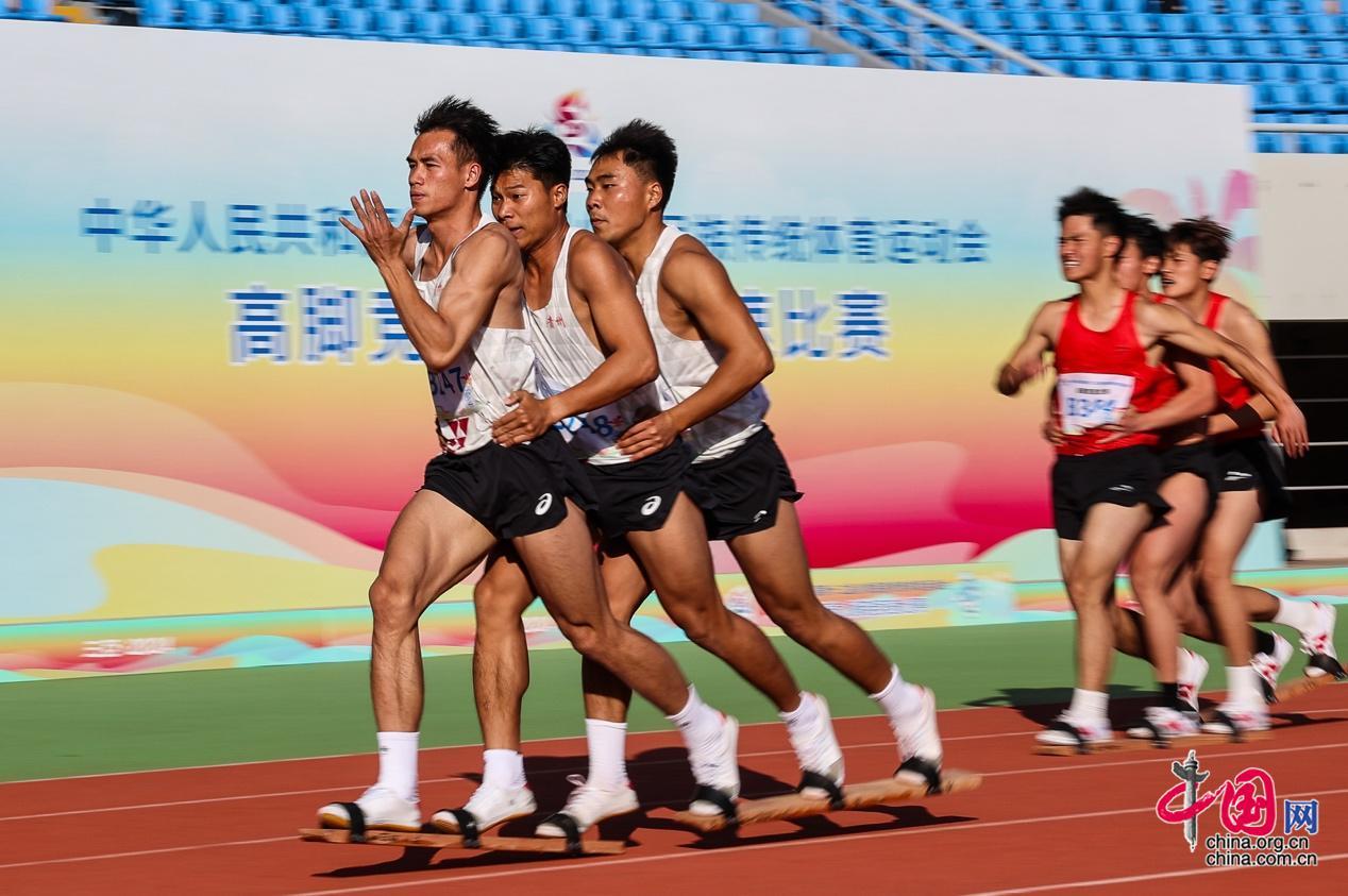11月28日,第十二屆全國少數(shù)民族傳統(tǒng)體育運(yùn)動(dòng)會(huì)板鞋競(jìng)速比賽男子三人板鞋項(xiàng)目在海南省三亞技師學(xué)院體育場(chǎng)舉行。中國網(wǎng)記者 董寧 攝影