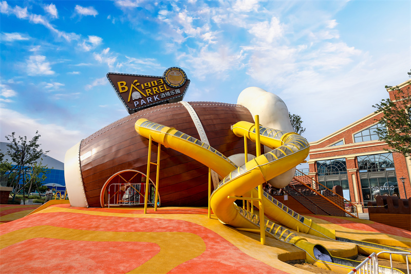 走進精釀花園,強烈的氛圍感撲面而來:以發(fā)酵罐為造型的工業(yè)雕塑,仿佛在喃喃低語啤酒歷史;歡樂滑梯從啤酒桶里“長”出,似乎要把快樂傳遞到遠方;曼妙的啤酒花身姿輕盈,在陽光海岸靈動跳躍……