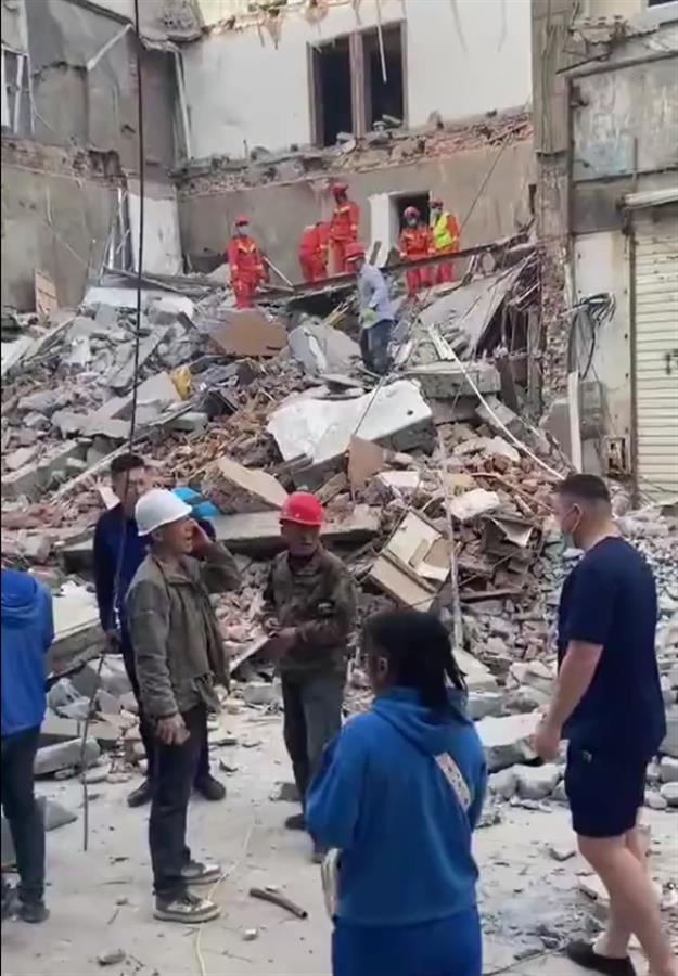 上午10時(shí)許,該商戶表示,事故現(xiàn)場(chǎng)已圍起了警戒線,有工作人員駐守。附近一餐館老板告訴記者,現(xiàn)場(chǎng)有大型工程車輛和消防救援人員?,F(xiàn)場(chǎng)視頻顯示,在一建筑物的廢墟中,有消防人員正在瓦礫中作業(yè),旁邊有大型工程車輛。