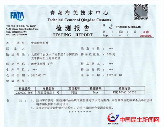標稱安徽譽藥堂藥業(yè)有限公司生產(chǎn)的一批次“亳春堂阿膠八珍膏”(生產(chǎn)日期:2022.04.10),經(jīng)檢測未檢出驢皮源性成分。